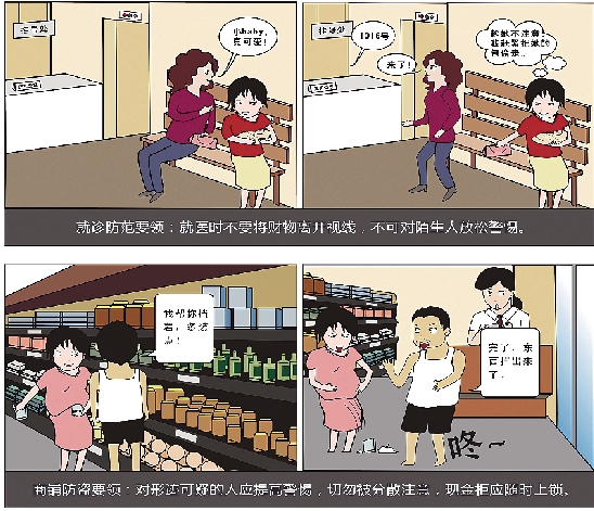 遇到热闹,不要光看热闹而疏忽自己的钱物。避开老“粘”在身边的陌生人,如果在街上不小心被人撞了一下,要及时查看钱物。