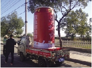 昨日上午9时许,交警塘下中队民警在104国道线上金路口设卡检查时,远远看到一个巨大的王老吉“饮料瓶”在缓缓移动,驶近才发现是一辆单排小货车上放置着一个巨大的王老吉饮料瓶模型。