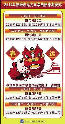 与去年春运有所不同的是,春运开行的临时旅客列车车票预售期提前到25天(含当天)。而其余日常固定开行的列车包括高铁动车组车票,将在12月28日起开售,互联网和电话订票预售期仍为20天(含当天),仍然实施各车站预售车票分时段错峰的措施。