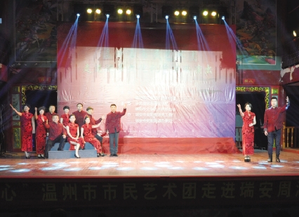 日前,温州市市民艺术团走进安阳街道周湖村文化礼堂,为我市200余名市民献上朗诵《品质之城 幸福瑞安》、舞蹈《瓯江绣女》、魔术《开心一刻》等节目,受到了热烈欢迎。