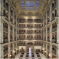 该图书馆坐落于世界顶尖级大学——约翰·霍普金斯大学。过去,它被称为书籍大教堂,皮博迪图书馆的特色在于其令人印象深刻的中庭构造:黑白相间的大理石地板、五排铸铁装饰阳台、高达61英尺的网状天窗房顶。1875年图书馆由它的同名慈善家创建,其中的30万册藏书专注于宗教、英国艺术、罗马语言文学以及地理等。