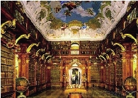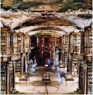 圣加仑修道院内的教堂和图书馆都建于1758年至1767年间,建筑外观简洁雅致,这座图书馆被瑞士人称为“灵魂药房”。1983年,联合国教科文组织将圣加仑修道院和图书馆列入世界文化遗产名录。图书馆是典型的巴洛克建筑风格,采用拱形天花板,木质立柱上方有雕花纹饰,天花板上全部都是宗教题材绘画作品。如今这里依然是公立图书馆,读者还可凭借书证借阅图书,不过只有1900年以后印刷出版的书籍才能外借,其他珍贵的善本书籍、中世纪文献只能在图书馆的阅览室内阅读。