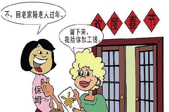 市民林先生建议,想要将保姆留在身边过年,不妨平时打好“亲情牌”。如果东家视保姆如家人,让保姆感受家的温暖,保姆干活时更加卖力,春节想留住保姆也并非难事。
