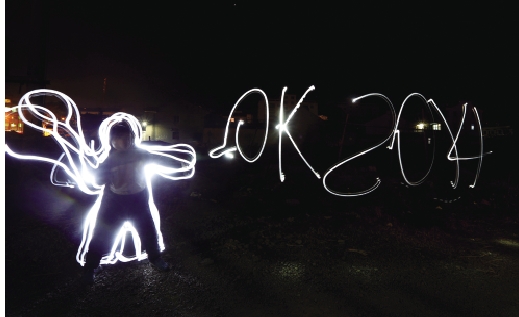 | 小朋友用光绘出对2014年的祝福 。 (特约记者 刘峰)