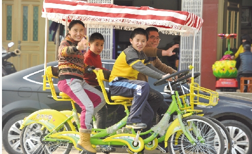 | 节日期间,塘下一家人到高楼绿道骑行。 (通讯员 陈茂贵 )