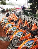 @书柜里的小丸子:一场大雨,经过湖滨公园,看见公共自行车一辆辆被淋了个“落汤鸡”,有关部门是否该考虑给公共自行车装个车棚呢?车辆湿嗒嗒不但不好骑,而且容易生锈吧?