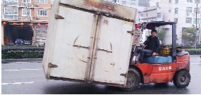 叉车上路 危险!