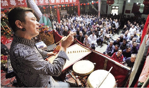 市区城北村活动中心,一位琴师正在演唱“娘娘词”,近千名村民赶来聆听 孙凛/摄