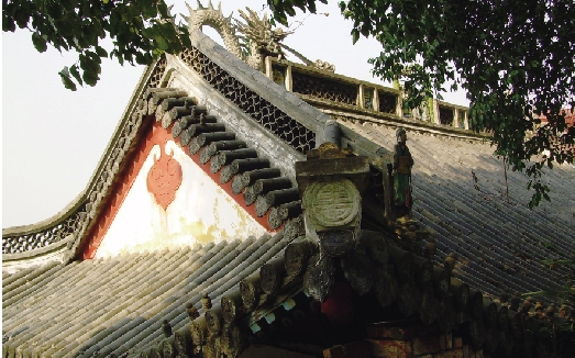 大殿朝南,三间,中间坐庄济圣王,左间是万寿宫,右间未坐神位。全殿金碧辉煌。两边柱上有一楹联写:“示筏三港救困济贫千秋颂德,成神凤翔护国惠民万世流芳。”道出了庄济圣王的身世功德和百姓的永远纪念。从大殿的东面门出去是香房,墙壁上安一香炬,下框浮雕双龙祥云,十分逼真,上部刻有“康熙戊戌仲冬吉旦”八字,属前清文物,十分珍贵。大殿屋面宫殿歇山式,高屋脊,两端塑双龙喷水,中塑福、禄、寿三星,嵌“国泰民安”四字。圆筒瓦、檐头上置圆形虎头瓦,下挂叶形寿字滴水瓦。整个屋面融铸道教的教理教义,显得庄严肃穆。