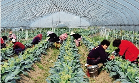 在位于上郑村的浙江庆一种苗有限公司的基地里,农户们正忙着在设施大棚内给花椰菜夹花授粉,这些花椰菜采取分批错时播种的方法,延长花椰菜开花和收获时节。