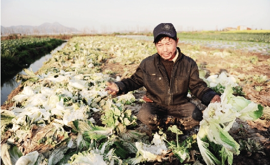 “大白菜批给商贩每公斤才1元钱,除去管理费、运费、人工等成本,根本没利润,还不如不要。”前日,塘下镇官渎村下垟片,来自贵州正安的农户赵仁勇心酸地望着一地大白菜说。