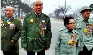 我市志愿军老战士孙凤康,今年已81岁。他作为4位赴韩老兵之一,也是浙江省唯一一位赴韩老兵,前往韩国参加志愿军遗骸交接仪式。在首都机场前往韩国时,孙凤康和其他3位志愿军老战士,都换上了写有“中国人民志愿军”字样的军装,上面还挂上了“中国人民志愿军遗骸交还仪式”的标识,上面印有中韩两国国旗。他们拉出一条横幅,上面写着:“战友们,咱们回家吧!”