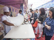9时57分,记者来到星海广场食品安全购专场。除了粮食、蔬菜、水产、肉制品等名特优新农产品开展特卖活动外,还聚集了蒙古烤肉、臭豆腐、烤翅、炒面、印度飞饼等各地风味小吃的摊点,阵阵香味刺激着人的味蕾,不少市民纷纷品尝。