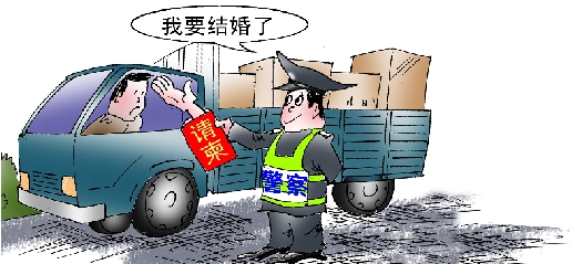 武汉一交警办婚宴,竟向非亲非故的司机每人收500元礼金。 (陶小莫 画)
