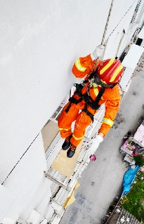接警后,消防中队立即出动一辆抢险救援车、8名指战员赶到现场。由于叶女士家住在顶层7楼,大家商议了方案后,一名经验丰富的战斗员立即佩戴好安全吊带等防护装备,从顶层大平台上通过滑绳下到7楼窗户边,顺利进入室内打开房门,让苦等在室外的叶女士回了家。