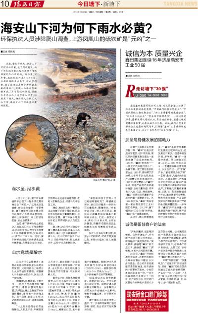 环保执法人员涉险爬山调查,上游凤凰山的硫铁矿是“元凶”之一