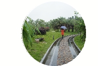 来到瑞安经济开发区河滨公园东入口,昔日的土坡已被一片绿色所取代。沿着蜿蜒的小道漫步在公园的深处,两边的植物郁郁葱葱,斑驳的阳光透过树林的缝隙洒在盘旋的小道上,别有一番风味。