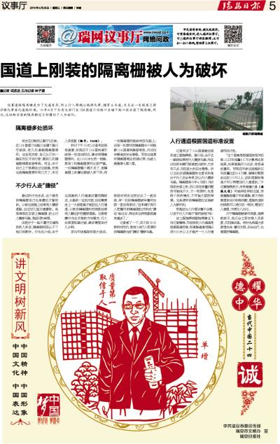 国道上刚装的隔离栅被人为破坏