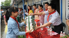 领到了新书包和新文具的小朋友王凡迪显得特别开心。王凡迪是该校三年级的学生,来自江苏沭阳。她腼腆而兴奋地说:“感谢叔叔阿姨们的关心,新文具我特别喜欢,以后会更加努力学习。”