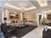 本套户型设计,平面布局打破常规设计格局,把原来位于一角的客厅空间,移到了户型中心位置,使南北通透,光线与视野空间更加穿透。开放式的空间,简洁明了的天棚吊顶,客厅简约大气的沙发背景墙,明快的色彩搭配,一切都让家居空间显得明亮典雅。圆弧形的餐厅和客厅空间相连通,形成对比,紧凑与松弛把握有度,动线流畅,空间富有节奏与韵律感。白色做为基本色调,无疑又为家居的空间实用性和美观性加分不少。