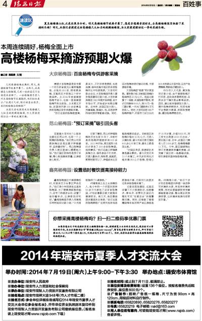 高楼杨梅采摘游预期火爆