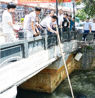“不允许河面上存在垃圾以及其他漂浮物。工作人员要全天候在河上工作,这才叫保洁。”在检查过程中,张本锋发现,有些河道甚至是已经完成整治的河道,河面上依然漂浮着不少垃圾,便仔细询问了保洁公司日常保洁情况。他要求进一步加强河面保洁力度,增加保洁船只与打捞次数;5个办事处对于保洁打分工作要集中管理,严格考核。