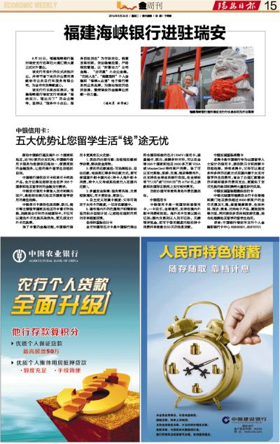 福建海峡银行进驻瑞安