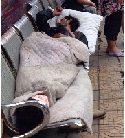 @小猫猫大爱爱@瑞安日报-报料王:新商城门口的车站,一名乞丐占据了公交车站头的4张椅子,当时候车的乘客只能无奈看着。