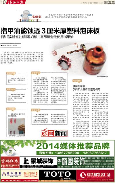 指甲油能蚀透3厘米厚塑料泡沫板