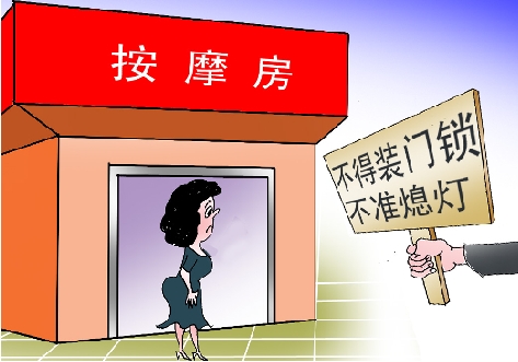 广东再出重拳“扫黄”,日前出台《广东省按摩服务场所管理规定》,规定按摩房内不得装门锁,按摩不准熄灯等。 (陶小莫 画)
