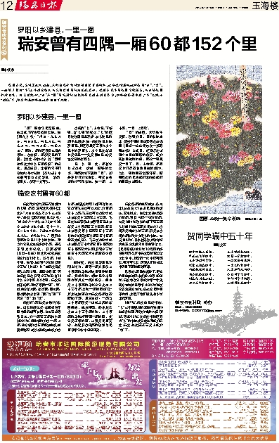 瑞安曾有四隅一厢60都152个里