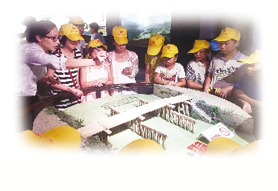 7月27日上午,伴随着讲解员温柔动听的嗓音,“小候鸟”们开始参观瑞安博物馆。一进馆,他们就被地上巨型地图吸引了,原来这幅在玻璃地板下散发着蓝色光芒的就是瑞安航拍地图。地图上用红色圆点标注着文保单位所处的位置,将放置在旁边手推车模样的仪器推到圆点上,仪器的屏幕上就能显示出文保单位的具体资料。
