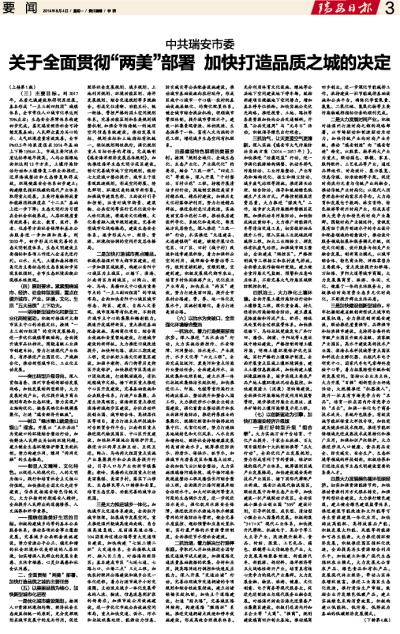 关于全面贯彻“两美”部署 加快打造品质之城的决定