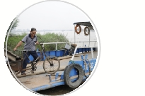 8月23日下午15时许,记者跟随10多名乘客登上渡轮。甲板上随处停放着三轮车、摩托车等,三轮车里装满了大包小包。一些乘客与船老大相识,相互打招呼。
