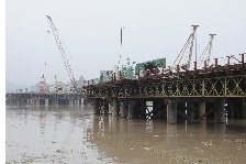 8月27日下午15时许,烈日当空,酷暑逼人。但是这些并没有影响飞云江六桥的正常施工。栈桥、高塔、江岸、吊车……工人都在各自岗位忙碌着。大家心里都清楚,自己手上所建的大桥将连接仙降与陶山,是融进魅力瑞城的靓丽标志物,将融入温州地区的交通大动脉104国道。