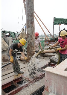 记者了解到,飞云江六桥建设过程中有不少难点,一是主桥超长桩,主桥桩基深100余米,桩径2米;二是承台为大体积混凝土结构,施工时产生的水化热容易造成承台开裂,且在水中施工,难度较大;三是主桥施工为悬臂挂篮施工,即以承台为中心,利用挂篮对称地向两边浇筑梁段。