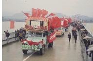 1986年3月15日,飞云江大桥举行隆重的开工典礼。经过3年的建设,1989年1月6日,飞云江大桥建成通车。通车当天,摄影师管陶也在现场,“那天下着雨,不过飞云江大桥上却是人山人海,成排成排的卡车奏着音乐驶过大桥,现场的群众兴奋地响起阵阵掌声。”回想起当年的情况,管陶略显激动,急忙拿出当年通车的老照片展示给记者。管陶说,这是瑞安发展史上的里程碑,他永生难忘。