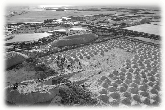 一个盐场被分成3个部分,盐场两边是盐坦,为晒盐之用;盐场中间则有一个直径为3米多的圆形盐漏;另外还有一个晒坦,用于晒制最后的成品盐。
