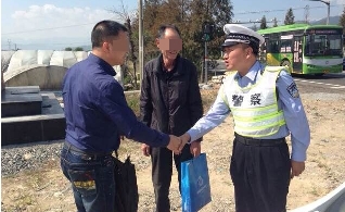 董华云立即下车将老人扶至路边询问,老人看上去有点神志不清,只说自己想去陶山,儿子曾先生在陶山某学校当教师。董华云当即通知中队警务室查询陶山教育学区曾先生的联系方式,并接通了曾老师的电话。
