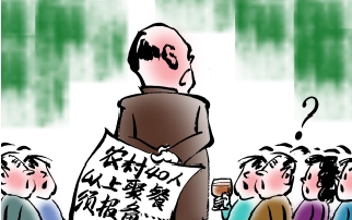 日前,河南周口出台《关于周口市农村集体聚餐食品安全管理办法的通知》,要求农村聚餐达40人以上者,需要报告备案;200人以上者,需要由食品安全专业人员现场指导。质疑者称这样做是对农村群体歧视。 (陶小莫 画)