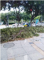 “这两天我经过电信大楼,发现旁边的人行道上堆满了断树枝,风一吹,树叶满地飞,不仅影响市容,还堵住了自行车道,更不方便行人走路。”@我要跨界拼设计 说,“地上的这些断树枝也许是有关部门为了美化城市对树木进行修剪时留下的,但要及时清理,方便交通。”