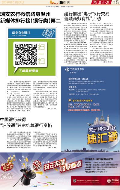瑞安农行微信跻身温州新媒体排行榜(银行类)第二