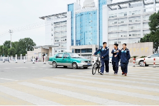 “有些车开得很快,骑自行车并不安全,两年前有个同学骑车过马路时,被一辆小货车碰到。这件事之后我骑车就很小心。”推着自行车过马路抵达校门口的小黄同学说。