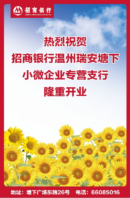 社址:浙江省瑞安市安阳新区安福路30号 邮编:325200 电话:(0577) 总编办:65816333 发行部:65836178 广告部:65917777 广告经营许可证:3303254000002全年订价:198元 印刷:温州浙报文化印务有限公司 发行方式:自办发行
