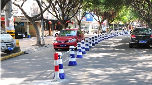 在商城南路,记者看到,从商城南路与瑞祥大道的交叉路口,一直延伸至商城南路与商城北路,一整条路中间都设置起了隔离护栏,只在景江路、望滨路等路口留下缺口,道路两侧都为一车道宽,并在其中一侧预留停车位。“中间设置隔离护栏之后,虽然车开得不快,但比起从前的拥堵状况,已经好多了。”一市民说。