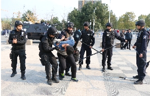 “12月26日下午,市动车站一楼出站口处传来‘砰!砰!’两声枪响,两名持刀‘暴徒’应声倒地,剩余一名‘暴徒’被全副武装的特警迅速制服,当时我都看呆了,后来才发现这是特警的一次演习。”@冲动是魔鬼 说。