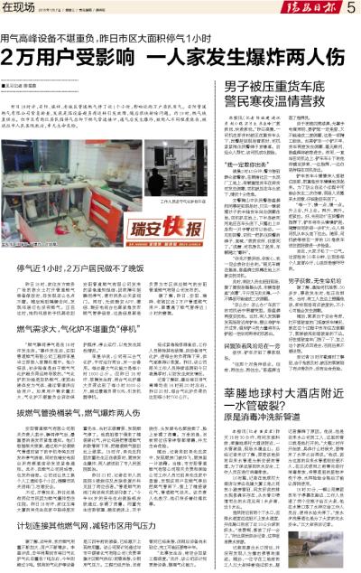 2万用户受影响 一人家发生爆炸两人伤