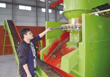 “华泰”瑞安分公司耗时一年多时间建成投产,第一条生产线每天最多可以“吃”掉80吨鞋革废料。记者看到,鞋料垃圾进入流水线后,经过撕碎、加入添加剂、成型等工序,最后变成一根根长短不一、直径约一元硬币粗的燃料棒。