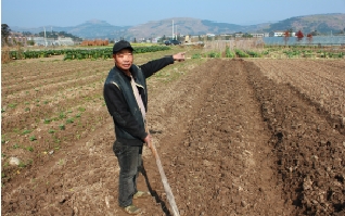 当天,市兴华蔬菜专业合作社理事长洪作华正忙着整理田块(如图),准备种植花菜、蚕豆等作物。他是冯渡村人,5年前到霞岙村飞云江边租了38亩荒地,开垦后,种植蔬菜20余种。“咸水泡到的地方不能种植蔬菜,如果出现咸水倒灌,番茄、芹菜就会被水淹死。”他说。