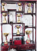 “我们出马和骑手,到全国打比赛。”潘孝忠指着一个陈列架,上面摆着11个奖杯,大部分是省级比赛,光是第一名的奖杯就有4个,最新的一个是2014年3月份在一次公开赛冠军。